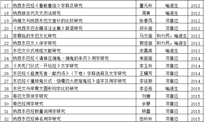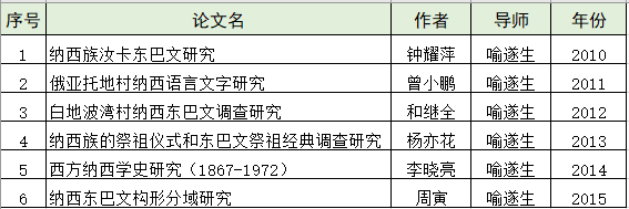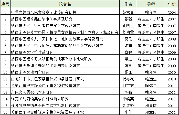 文献所历年东巴文硕博论文汇总