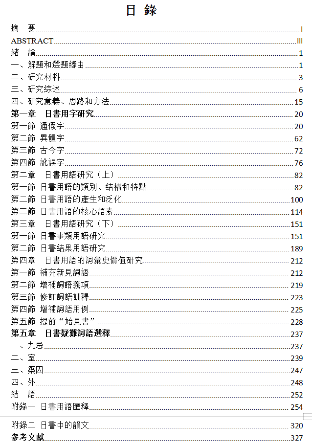 本章對日書事類用語和結果用語進行專題研究。首先,我們將日書事類用語分爲十五類,包括祭祀用語、征伐用語、作事用語、土功用語、生產用語、婚嫁用語、衣食用語、疾死祟用語、亡盜用語、貿易用語、行歸用語、交際用語、農林漁牧用語、年歲用語和其它用語。日書事類用語既有穩定性,又表現出了發展變化。