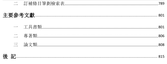 本文的附錄共三個:一是訂補條目音序檢索表。二是訂補條目筆劃檢索表。三是主要參考文獻。