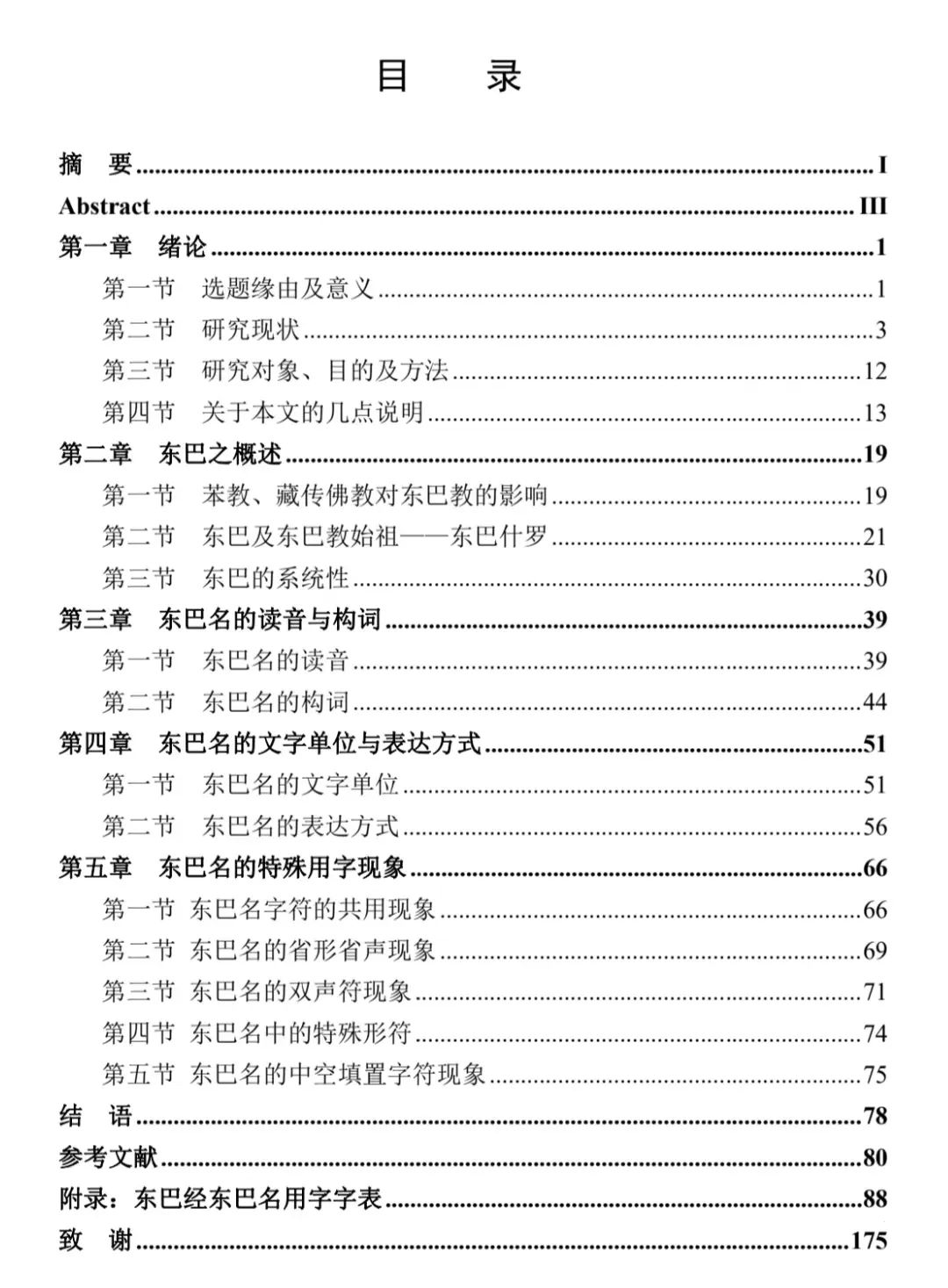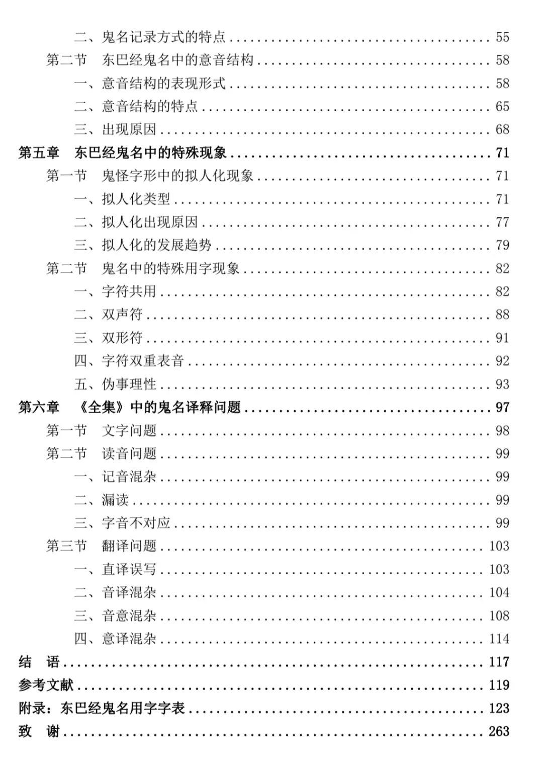 最后为结语部分,对前几章研究进行成果总结,得出东巴经鬼名研究的相关结论。