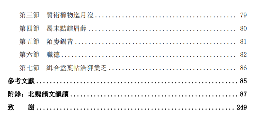 我們綜合運用了出土銘文、傳世詩文、假借、音注等多種材料,較爲全面地吸收了前人的研究成果,將北魏韻部劃分如下: