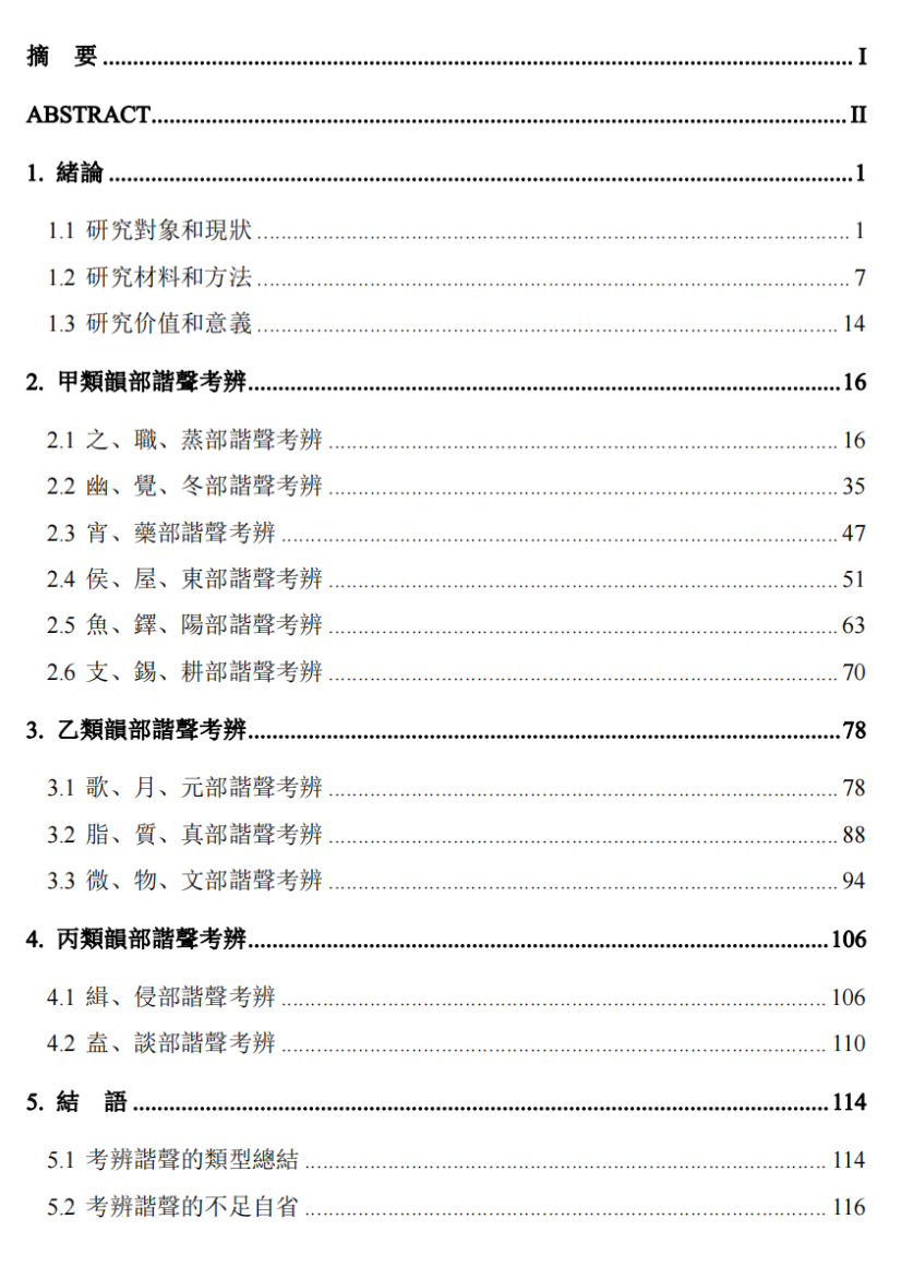 第二章主要介紹本文的研究材料、研究觀念與方法以及本文在整理材料過程中總結的通轉關係研究中應注意的幾個問題,主要有同形字問題、聲符的判定問題與多音字問題。