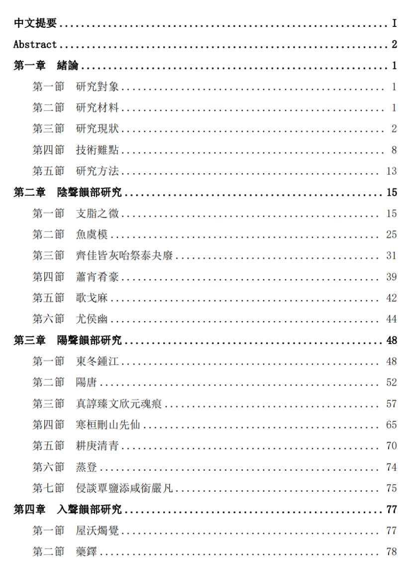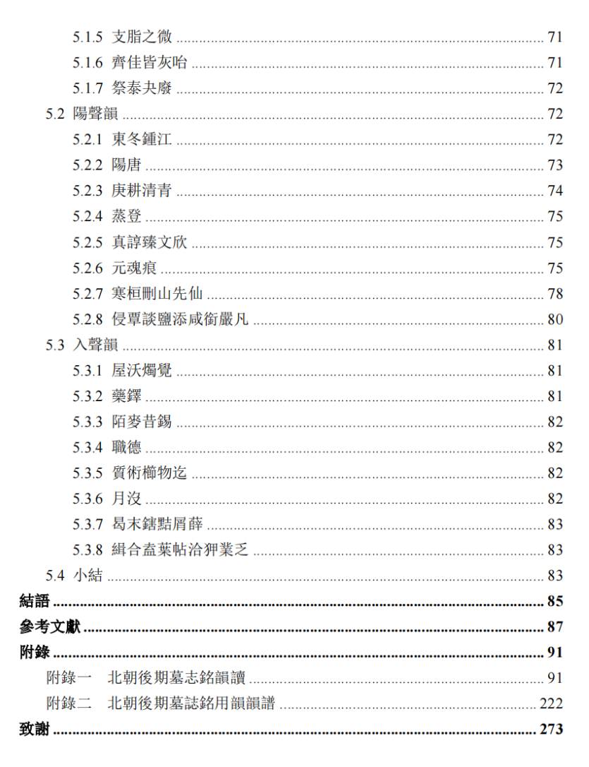 陽聲韻部 11 個:東一東三冬鍾江部、陽唐部、真諄臻文欣部、元魂痕部、寒桓刪部、山先仙部、庚耕清青部、蒸部、登部、侵部、覃部(暫將覃 8 韻歸爲一部)。