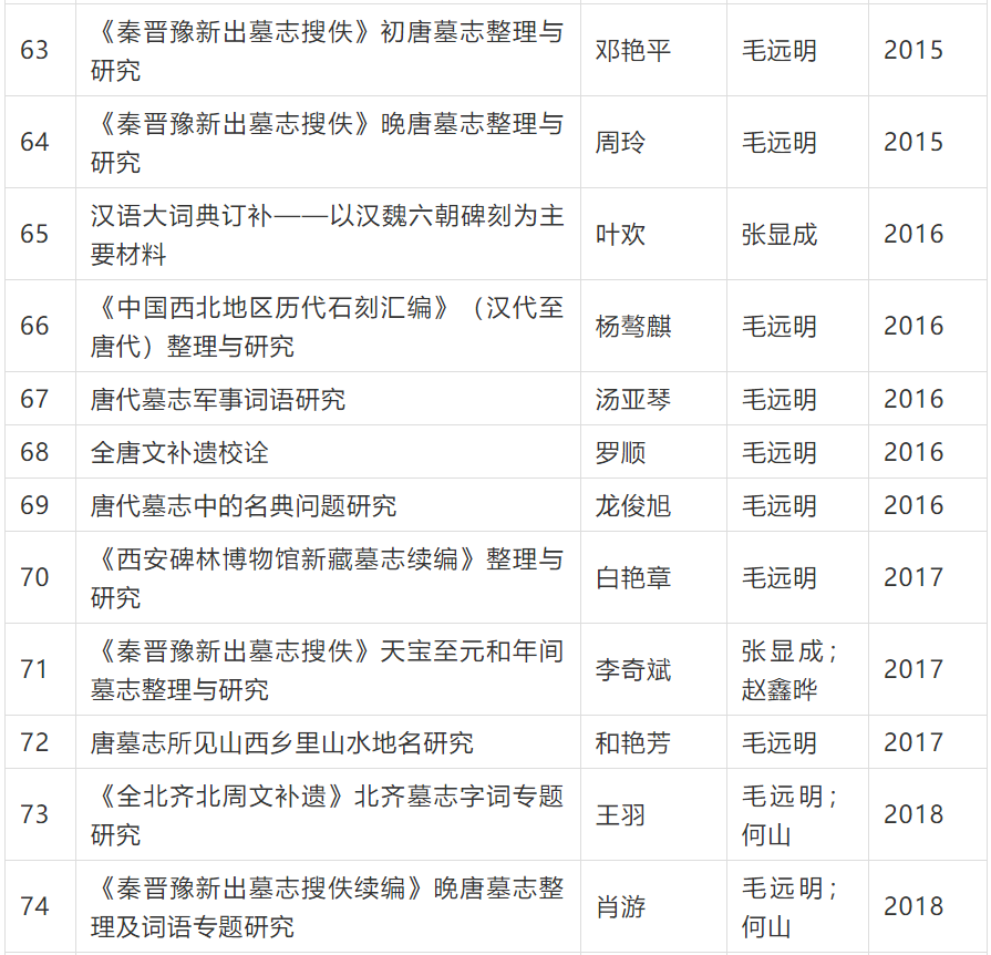 文献所历年碑刻文献研究硕博论文目录