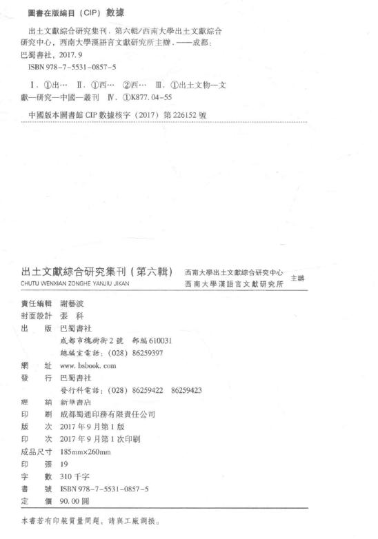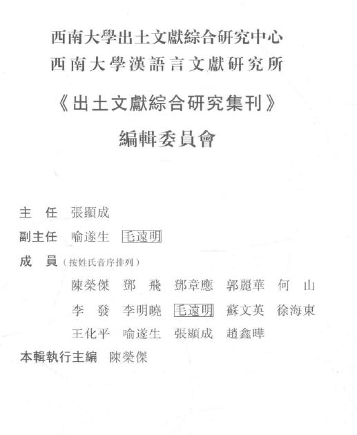 《出土文献综合研究集刊》第6辑
