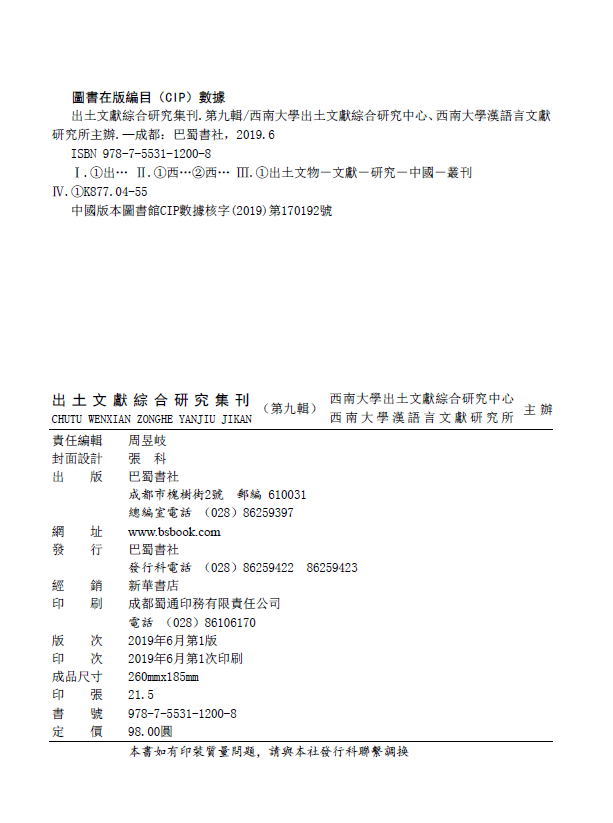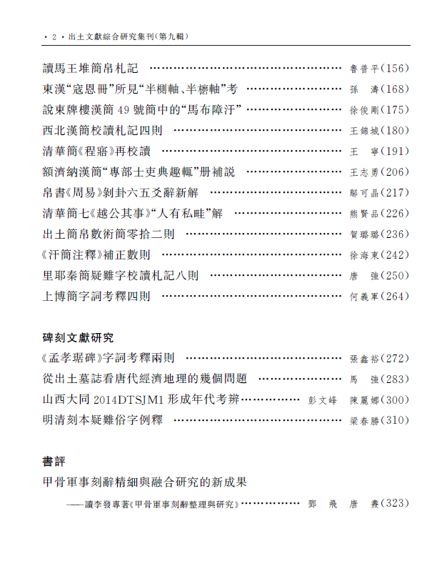 《出土文献综合研究集刊》第9辑