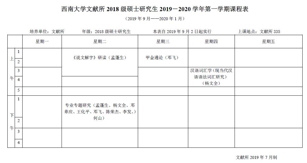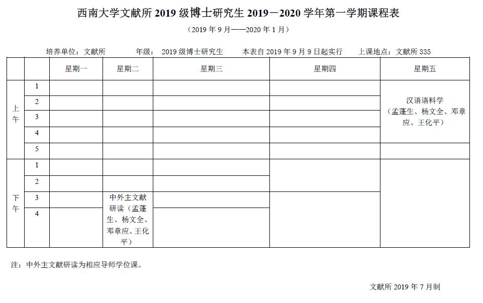 西南大学文献所 2019-2020学年第一学期课程表.pdf